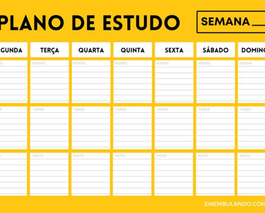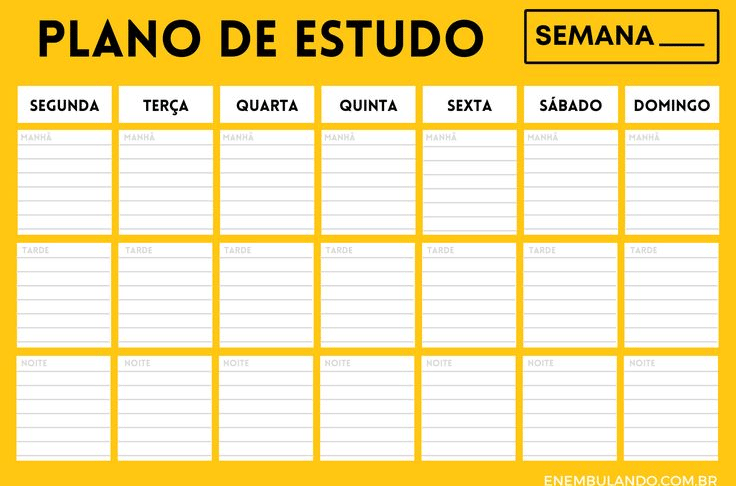 Sugestão de um planner semanal, organizar seu tempo aumenta a disciplina e ajuda a manter constância nos estudos.