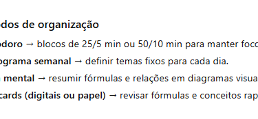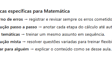 Revisão/erros (10–20 min): revisar erros no caderno.
